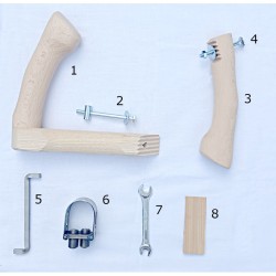 8 Dřevěný klínek pro úpravu úhlu ostří kosy vůči zemi (viz nastavení pro luční kosení/obsekávání)