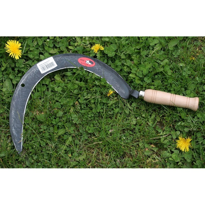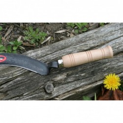 Faucille avec poignée surélevée de l'usine autrichienne Franz de Paul Schröckenfux. La longueur de la lame est de 50 cm. Idéale pour tailler dans les espaces restreints, près du sol, sans se blesser les articulations.